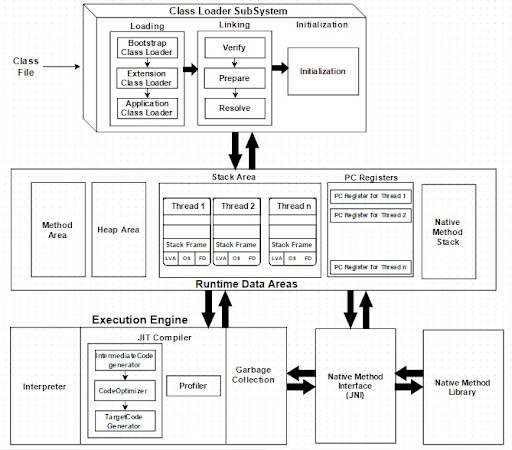 - JIT (Just-In-Time) Compiler: The performance booster that compiles frequently used bytecode into native machine code. It identifies “hotspots” (code that runs frequently) and optimizes them for faster execution.